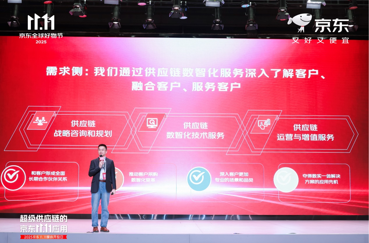 中国江苏网讯 11月11日,2025京东11.11媒体开放日在北京举行。作为一家以供应链为基础的技术与服务企业,京东的发展与创新紧紧围绕“供应链”这一核心,基于二十多年来锤炼的供应链基础设施能力,以科技创新助力现代化产业体系建设,展现超级供应链的京东11.11的应用成果。